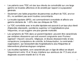 • Le TOC comorbide avec le trouble bipolaire est associé à un taux plus élevé