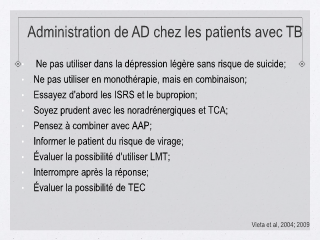 • Ne pas utiliser dans la dépression légère sans risque de suicide;