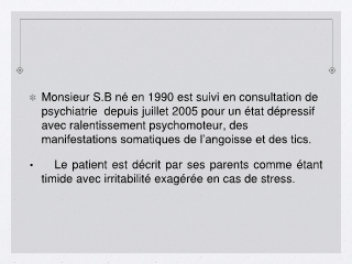 Monsieur S.B né en 1990 est suivi en consultation de