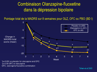 Pointage total de la MADRS sur 8 semaines pour OLZ, OFC ou PBO (BD I)