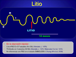 • Litio>PBO En 5/7 estudios (N=158) (Mendels J, 1976)