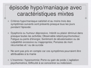 L'insomnie / hypersomnie; Perte ou gain de poids; L'agitation