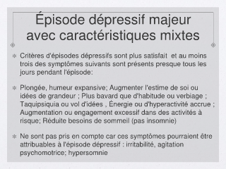 Critères d'épisodes dépressifs sont plus satisfait et au moins