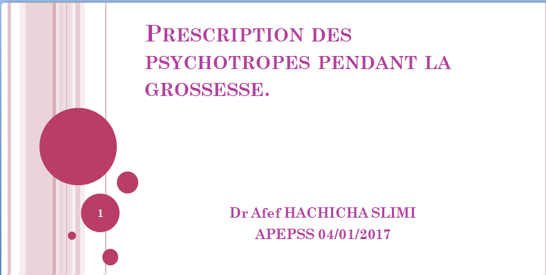 EPU organisé par l’APEPSS sur les Prescriptions des Psychotropes pendant la grossesse animée par Dr Afef HACHICHA et ce le Mercredi 04 Janvier 2017.